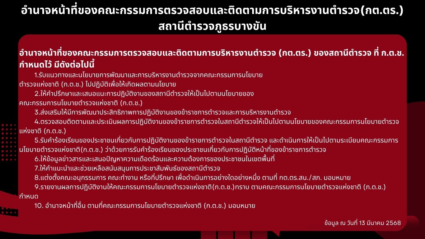 บนบาท อำนาจหน้าที่คณะกรรมการตรวจสอบและติดตามการบริหารงานตำรวจ(กต.ตร) ของสถานีตำรวจภูธรบางขัน