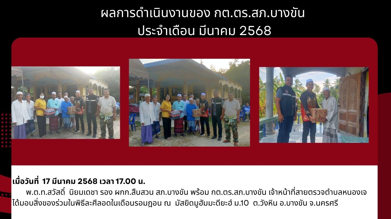 ผลการดำเนินงานของ กต.ตร.ถานีตำรวจภูธรบางขัน ตามงบประมาณ พ.ศ.2568 (ต.ค.67-มี.ค.68