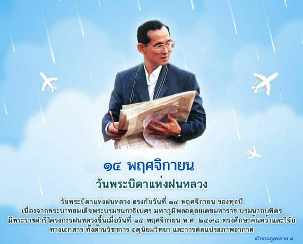 14 พฤศจิกายน 2567 “วันพระบิดาแห่งฝนหลวง” เป็นวันที่พระบาทสมเด็จพระบรมชนกาธิเบศร มหาภูมิพลอดุลยเดชมหา
