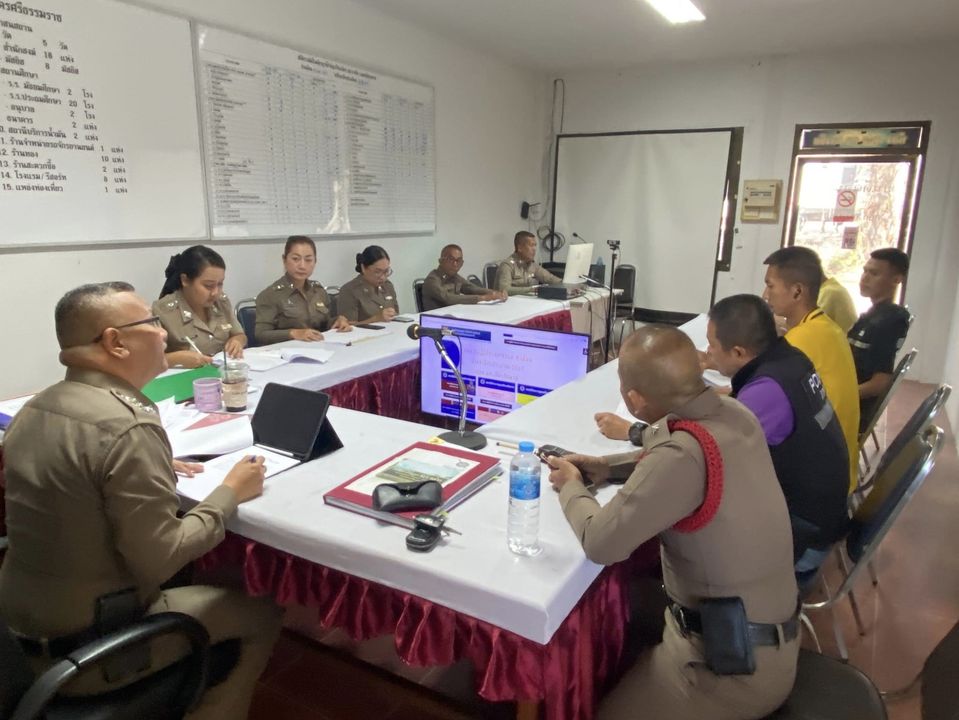 สภ.บางขันพ.ต.อ.จักรกฤช แต้วัฒน ผกก.สภ.บางขันเรียกประชุม เจ้าหน้าที่ธุรการทุกแผนกงาน เพื่อเร่งรัดติดต